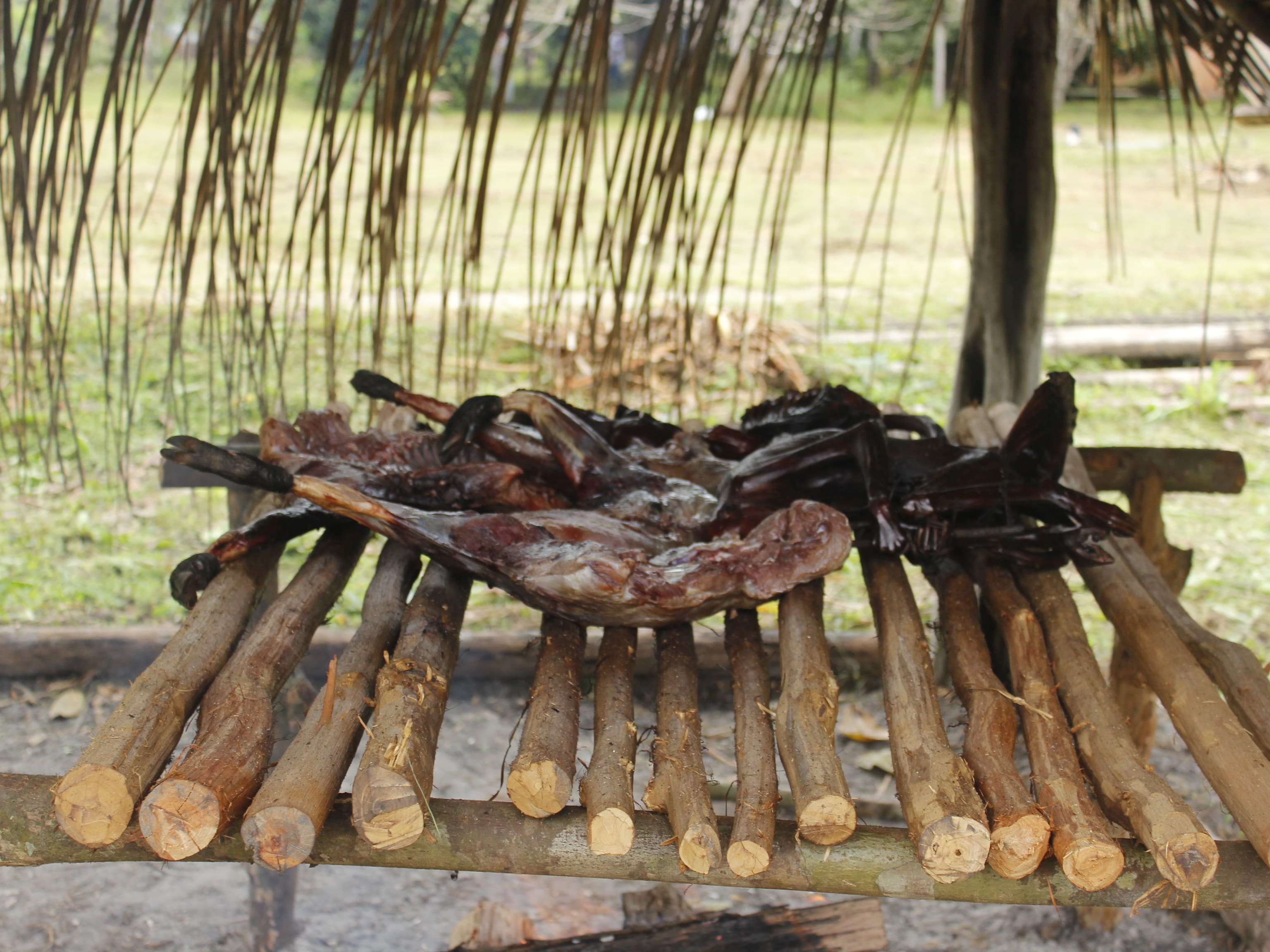 a caça sendo moqueada
